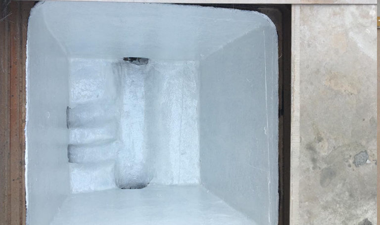 GRP is an excellent lining system is compared to coatings such as expoxies and urethanes, due to the way the system is applied and thickness to which it is applied. It is applied in sheets rather the wallpapering and the advantage GRP has over coatings is that it will cover cracks and even large holes. Expoxies are painted on at thickness of around 0.5mm. It is possible to cover defects and uneven substrates with a minimum of 3mm thickness, giving a very strong but still flexible costing.